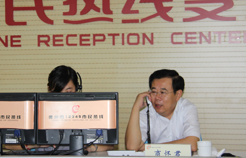 8月15日上午,德州市副市长商怀君带领市商务局、工商局、质监局、旅游局主要负责人到市12345市民热线受理大厅接听市民来电。